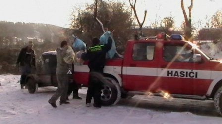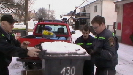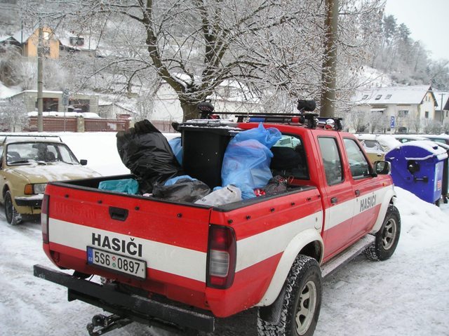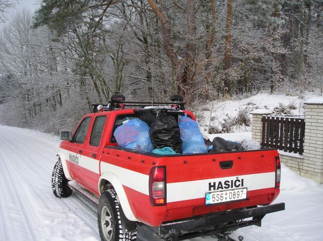 V zimním období nám naše JSDH, ve spolupráci s našim panem starostou, pomáhá se svozem odpadů, ze špatně dostupných míst, jako např. z Nových Tupadel a Hubině.